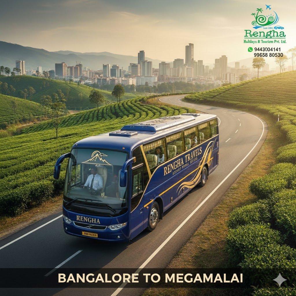 Keywords: Bangalore to Megamalai tour package, Rengha Holidays Megamalai, luxury travel Bangalore, Rengha Travels Bangalore, Bangalore to Theni travel, Megamalai hill station tour, luxury bus hire Bangalore, Megamalai sightseeing package