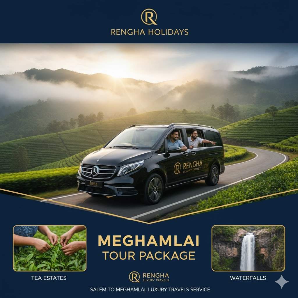 Escape the ordinary and embrace the extraordinary. Let Rengha Holidays transport you from Salem to the misty, enchanting world of Meghamalai, ensuring your journey is as luxurious and unforgettable as the destination itself.